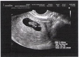 No dia 03 de agosto de 2009, segunga-feira, não só vi esta imagem, como também escutei o coração do meu bebê pela primeira vez !!!! Nossa ... foi lindo demais !!! Minha tia Vera me acompanhou, pois o meu marido estava viajando a serviço, infelizmente. Adoraria que ele estivesse presente para sentir essa imensa emoção junto comigo.